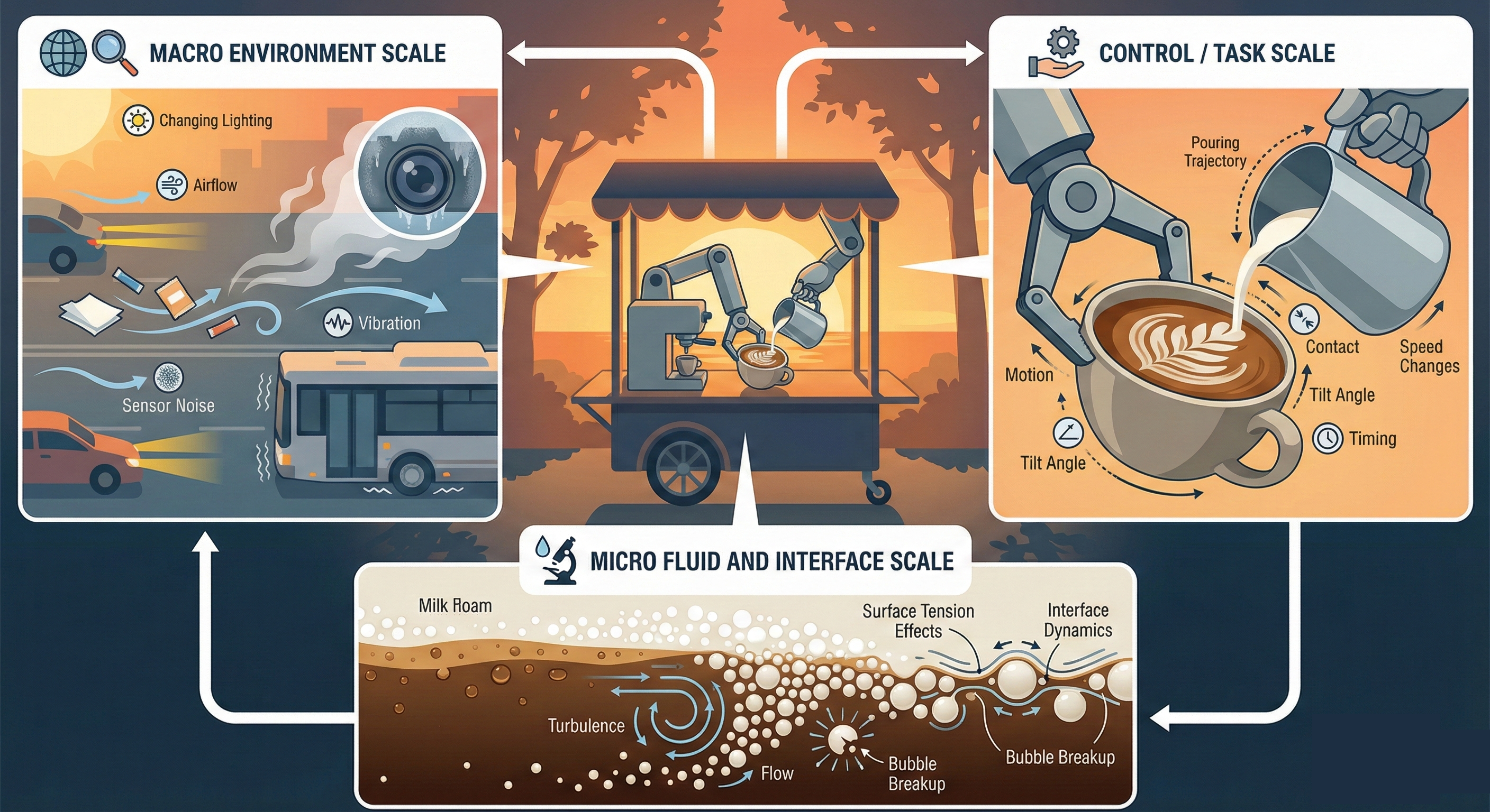 • 环境是多尺度耦合系统:宏观的光照形变,微观的摩擦与接触力学